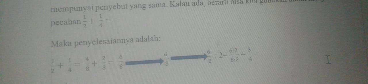 Perhatikan pecahan senilai dari pecahan di atas! Apakah ada pecahan dari kedua yang mempunyai penyebut yang sama. Kalau ada, berarti bisa kita gunakan untuk menjumlahkan pecahan